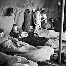 A British Army doctor examines patients at a casualty clearing station in Tunisia, February 1943