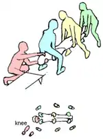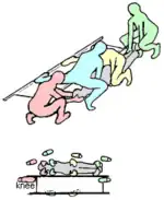 It is also possible to use a roll-and-lift method, or "spoon" lifting (relevage à la cuiller in French), with three people: