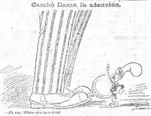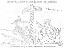 The mere possibility of the granting of a Statute of Autonomy for Catalonia provoked the immediate reaction of Spanish nationalism, which deployed a strong anti-Catalanist campaign based on clichés and stereotypes about Catalonia and the Catalans, but which managed to mobilize thousands of people who protested in Madrid and other cities.[15] The campaign was initiated by the so-called trust of the liberal press of Madrid formed by the newspapers El Liberal, El Heraldo de Madrid and El Imparcial, which was soon joined by the conservative daily ABC, the newspaper with the largest circulation in Spain. Various employers' organizations, some of them linked to the liberal sector headed by Santiago Alba, called for a large demonstration in Madrid, accompanied by the closure of stores, which brought together more than 100,000 people and had an enormous impact on public opinion —the newspaper El Imparcial headlined on its front page: "Madrid's protest against the separatism of the Catalans of the League"—. The campaign also included the boycott of Catalan products, as would happen in 1932 when the Cortes of the Second Spanish Republic debated the draft Statute of Autonomy of Catalonia.[24]