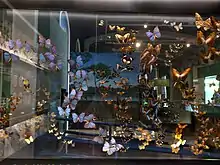 - Butterflies: Contains a display with specimens of real taxidermied butterflies and moths, with information on some species, in addition to texts on mimicry, the life cycle of butterflies and moths, and some data on the silkworm.[15]