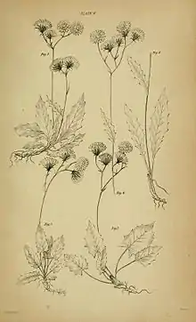 Botanical illustration of Hieracium murorum and Hieracium sylvaticum in Plate II by Catharine Johnston published in The Botany of the Eastern Borders.[1]
