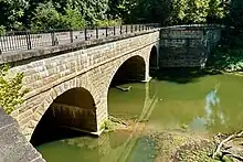 Catoctin Creek is a 27.9-mile-long (44.9 km)[1] tributary of the Potomac River in Frederick County, Maryland, USA. Its source is formed north of Myersville. In Myersville, it merges with the Little Catoctin Creek at Doub's Meadow Park.[2] From there, it flows directly south through Middletown, and the southern Middletown Valley for the entire length of the stream collecting several smaller tributaries. It makes a crossing with the Chesapeake and Ohio Canal at the Catoctin Aqueduct, one of just 11 of these structures to survive.[2] Catoctin Creek enters the Potomac River east of Brunswick.