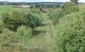 In 1898, Parliament approved the G&SWR request for 15 new railway routes, but the Catrine Branch was the only one built.[4] The bill received royal assent on 29 August 1898.[note 2] The branch line from Brackenhill Junction was opened on 1 September 1903.[1][4][5] The under one-and-a-half-mile (2.4 km) single track descended from the junction to the terminus.[6]