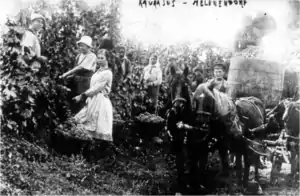 Commonly referred to as nemsə or lemsə[28] (from the Russian немец – "German") by the local Azerbaijani population, Germans in the Elisabethpol Governorate were traditionally engaged in farming. However, starting from 1860, viticulture was becoming more and more important in the life of the German agricultural communities. By the end of the 19th century, 58% of the region's wine production was manufactured by the Vohrer Brothers and the Hummel Brothers of Helenendorf.[29]