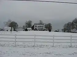 Cedar Point Farm is a historic home and farm located in Jackson Township, Morgan County, Indiana. The farmhouse was built in 1853, and is a two-story, Greek Revival style brick I-house with a side gable roof. It features a two-story, full width front porch. Also on the property are the contributing summer house / summer kitchen, woodshed / smokehouse, English barn, cattle / tromp shed, double corn crib, tractor shed, garage, granary with sheds, privy, hen house, dog house, a wind mill pump, and two hand water pumps.[2]:5,7