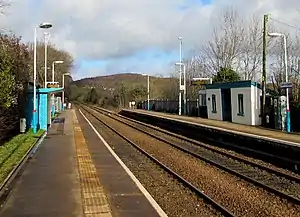 Cefn-y-bedd railway station serves the village of Cefn-y-bedd in Flintshire, Wales. The station is 4 miles (6 km) north of Wrexham Central on the Borderlands Line. It was opened in 1866 by the Wrexham, Mold and Connah's Quay Railway, which later became part of the Great Central Railway system.