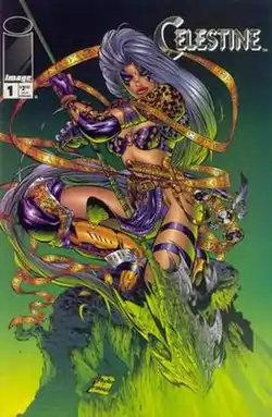 Celestine is a fictional character from in the Image Comics comic book universe created by Alan Moore, Rob Liefeld and Brian Denham. She was described as an avenging angel, responsible for the destruction of the Tower of Babel, Sodom and Gomorrah and other Old Testament atrocities. She is described as immensely enjoying her work.