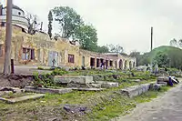 After the Soviet invasion of Poland and the events of World War II, the city became part of Soviet Ukraine, and the Polish historical monuments located at the cemetery were devastated or neglected.[3] The stone lions, the columnade, the monuments to foreign troops were removed.[3] Up to 1971 many of the sculptures were destroyed; the cemetery of Lviv Eaglets was completely destroyed and turned into a truck depot. Soviets attempted to destroy the triumphal arch with tanks.[3] In the 1970s, the majority of the tombs were razed with bulldozers.[3]