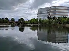 Centennial Lakes Park is a 24-acre (97,000 m2) park and man-made pond located in the southeast portion of Edina, Minnesota, United States. The park features more than 1.5 miles (2.4 km) of paved pathways meandering around a 10-acre (40,000 m2) lake and interspersed with landscaped grounds, formal and informal seating areas, swinging benches and fountains.