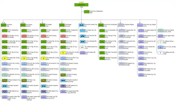 The Central Army (中部方面隊, Chūbuhōmen-tai) is one of five active Armies of the Japan Ground Self-Defense Force. It is headquartered in Itami, Hyōgo. Its responsibility is the defense of Chūgoku, Kansai, Shikoku and the Southern half of the Chūbu region.