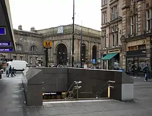 Central Station (also known as Central) is an underground Tyne and Wear Metro station, serving the Grainger Town area of the city of Newcastle upon Tyne in Tyne and Wear, England. It joined the network on 15 November 1981, following the opening of the third phase of the network, between Haymarket and Heworth. The station is named after Newcastle Central railway station, which stands directly above it.