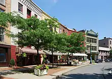 The Central Troy Historic District is an irregularly shaped, 96-acre (39 ha) area of downtown Troy, New York, United States. It has been described as "one of the most perfectly preserved 19th-century downtowns in the [country]"[3] with nearly 700 properties in a variety of architectural styles from the early 19th to mid-20th centuries. These include most of Russell Sage College, one of two privately owned urban parks in New York, and two National Historic Landmarks. Visitors ranging from the Duke de la Rochefoucauld to Philip Johnson have praised aspects of it. Martin Scorsese used parts of downtown Troy as a stand-in for 19th-century Manhattan in The Age of Innocence.[4]