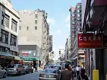 Centre Street is a north–south street in the New York City borough of Manhattan, running through the Civic Center, Chinatown, and Little Italy neighborhoods of Lower Manhattan. It connects Park Row to the south with Spring Street to the north, where it merges with Lafayette Street. Centre Street carries northbound traffic north of Reade Street and two-way traffic between Reade Street and the Brooklyn Bridge.