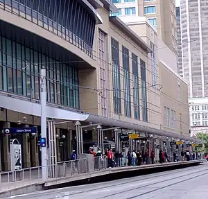 Centre Street station is a stop in downtown Calgary on the city's CTrain light rail system. It is only used by eastbound trains, with the nearest stations serving westbound trains being 1 Street Southwest station (serving only eastbound trains) and City Hall/Bow Valley College, serving both directions. The platform is located on the south side of 7 Avenue South, east of Centre Street, and is located inside the free fare zone serving both routes 201 and 202.