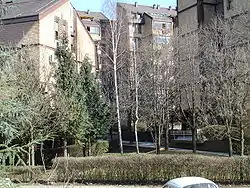 All streets are named after trees. Some after the species planted along them as avenues, some after generic ones: ash, linden, cedar, red oak, plane, birch, Pančić spruce, etc.[5] The building type is apartment block, usually paired in a line of G+3 and G+6 floors high. There's only light traffic (access roads) inside the neighborhood. The nearby area is residential with developing commercial sector since the 1990s. A shopping mall with a McDonald's restaurant is in the immediate vicinity, with a farmers' market and a number of other stores nearby.