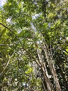Cassowaries eat the fallen fruit whole, and are the major dispersal agent for the species.[6]