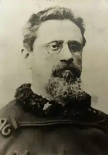 On 13 January 1896, Airaghi was called to Eritrea to participate in the First Italo-Ethiopian War as he commanded the 6th African Infantry Regiment as part of the 2nd Brigade of the Right column. On the evening of 29 February, Airaghi began his march towards Adwa, reaching the Rebbi Arienni on March 1.[3] During the Battle of Adwa, he conducted repeated assaults on the Ethiopian forces with enthusiasm and courage.[4] Despite his success at keeping the Ethiopian forces back, they were beginning to outnumber Airaghi's regiment and they surrounded and he was killed in the fighting.[1] Airaghi was posthumously awarded the Gold Medal of Military Valor on 1 March 1896, for his command at Adwa and a plaque was placed in Milan in memory.[4][2][5]