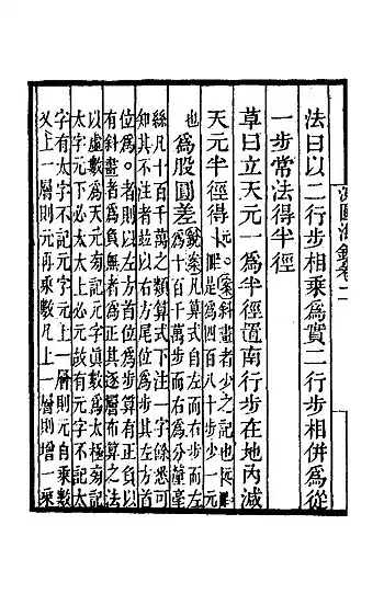 The monography begins with a master diagram called the Diagram of Round Town(圆城图式). It shows a circle inscribed in a right angle triangle and four horizontal lines, four vertical lines.