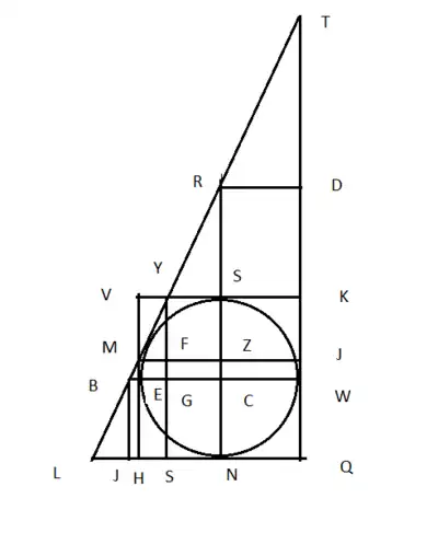 • KSYV: a horizontal tangent at S, intersects line TQ at K(坤), hypotenuse TL at Y(月).