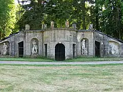 The landscaped park was redesigned in the English style around 1815 by Louis-Martin Berthault, the architect of the Empress Josephine, for whom he had designed the parks of Malmaison and Compiègne.[7] The park is denoted a historic monument and a protected natural site. It covers 16 hectares (40 acres) of alternating meadows and stands of tall trees, and is crossed by the river Mortagne. There is a rose garden, a 19th-century garden divided in "rooms" separated by walls, and a "1900 garden" inspired by the École de Nancy.[11]