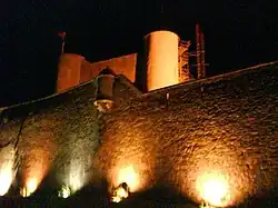The keep at the centre of the castle is solid and rectangular. Built of rubble, it has three floors, with the lords' residence at the top. The keep has numerous murder holes and defensive turrets at the corners. The rectangular fortification consists of two towers, a single gate and two watch turrets in the four corners. At the beginning of the 18th century, the towers were reconstructed and the keep adapted for artillery.