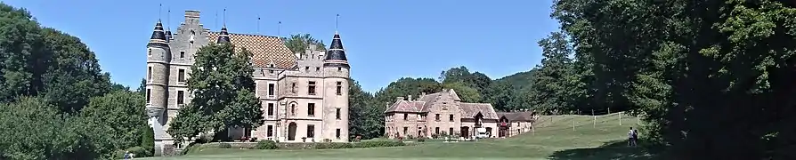 According to an article published in Le Dauphiné libéré, more than 45 different tile models were needed to create the roof.[7] At the end of work, a new castle had been built in the heart of the estate, in accordance with the idea that its author had of his work of "restoration":[8]