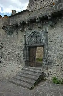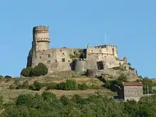 The Château de Tournoël is a medieval fortified castle partly in ruins in the commune of Volvic, in the Puy-de-Dôme département of France.[1] The castle is located on a rocky mountain spur at an altitude of 594 m in the foothills of the Puy de la Bannière which dominates the Limagne plains (about 350 m altitude above the level of Riom).