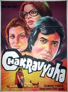 Chakravyuha is a 1978 Bollywood thriller film directed by Basu Chatterjee with screenplay by Jainendra Jain.[1] The film stars Rajesh Khanna in the lead role, supported by Neetu Singh, Vinod Mehra, Simple Kapadia, Pradeep Kumar, Om Shivpuri, Dina Pathak, Master Raju Shrestha, Yunuz Parvez, Pinchoo Kapoor and others.[2] Upon release, the film became critically acclaimed.[3][4][5] This film was co-produced by Rajesh Khanna with Yusuf Hassan.