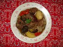 Chanakhi (Georgian: ჩანახი) is a traditional Georgian[1][2][3][4][5] dish of lamb stew with tomatoes, aubergines, potatoes, greens and garlic.