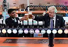 Sunak and Johnson at Fourpure Brewery in South East London in October 2021