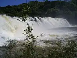 The river is fed by streams rising in the Araucárias National Park, a 12,841 hectares (31,730 acres) conservation unit created in 2005.[2] Other headwaters rise in the 6,566 hectares (16,220 acres) Mata Preta Ecological Station, a fully protected area created in 2005.[3] The river supplies water to the municipality of Abelardo Luz, Santa Caterina. The Chapecó River Falls are one of the main attractions of the region.[4]