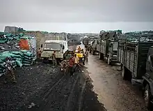 According to reports of UN monitors, the Kenyan Defence Forces (KDF) and the African Union Mission in Somalia (AMISOM) have undermined implementation of the charcoal ban.[29] After taking control of important trade routes and key ports (most notably the Kismayo port) from Al-Shabaab through operation "Linda Nchi" in 2012, KDF and AMISOM were directly involved in the charcoal trafficking business, in stark violation of the embargo and explicit instructions of Hassan Sheikh, president of Somalia.[30] In 2011–2012, Kenya argued for lifting the ban to clear the stockpiles around Kismayo but their proposal was rejected by the UN.[31] In 2016, there were reports that Kenyan forces permitted the export of charcoal from Kismayo in exchange for a fee of US$2 per bag.[32] Moreover, KDF and AMISOM have on multiple occasions been reported to deny the federal government and the UN monitors access to stockpiles sites and key ports of export to conduct investigations.[33][34][35] KDF and AMISOM have also ignored attempts by UN monitors’ to establish contact with them regarding embargo compliance.[32]