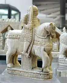 The Charlemagne chessmen are a group of 11th century chess pieces made from ivory, now in the Cabinet des Médailles, Bibliothèque Nationale in Paris, France. In 1598 the set contained 30 pieces, but after the French Revolution only 16 pieces survived. Next to the Lewis chessmen, the set is thought to be the second-most important collection of medieval chess pieces in the world.[1] It is one of the best-preserved sets of figures from the High Middle Ages.[2]