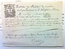 ![]() François Charles Racot de Grandval's baptism certificate | |