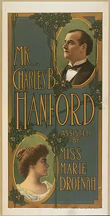Charles Barnum Hanford (May 5, 1859 – October 16, 1926) was an American stage actor, known as one of the most popular American Shakespearean actors of his time.[1] After an early career working with leading actors such as Edwin Booth, Thomas W. Keene, and Julia Marlowe, he established his own company and appeared often opposite his wife, the actress Marie Drofnah.