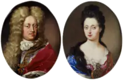 A pair of miniatures of Johann Wilhelm, Elector Palatine and his second spouse Anna Maria Luisa de' Medici, painted by Boit in 1700 during his stay in Düsseldorf (Bayerisches Nationalmuseum, Munich)