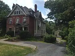 Charles Chauncey Dwight House, also known as the Chase-Dwight House, is a historic home located at Auburn in Cayuga County, New York. It was originally built in 1835, and expanded sometime after 1871 when it was purchased by Charles Chauncey Dwight, a State Supreme Court justice, residing in Auburn. It is a 2+1⁄2-story, brick and frame dwelling in the Queen Anne style with faux timbering detailing, a limestone foundation, and a cross-gabled slate roof with dormers. Also on the property is a contributing mid-19th century wood front gabled barn.[2]