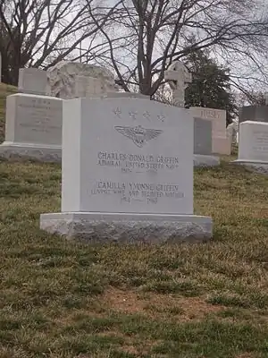 Griffin married Camilla Yvonne Ganteaume on September 14, 1935; after her death at the age of 49 on August 10, 1963, he remarried to Marion Hopkins Schaefer on November 21, 1964.[1] He and his first wife had two children: Linda Louise Griffin, and navy officer Charles Donald Griffin Jr.[19]
