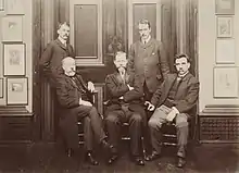 [standing:] C. F. Stuart, J. Dudley Johnston; [sitting:] Dr. J. W. Ellis, Dr. C. Thurstan Holland, Chairman, Charles F. Inston, Secretary - Northern Photographic Exhibition, Liverpool, 1908.
