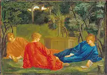 Taken up by John Ruskin at the age of 16,[5] Fairfax Murray was installed as Edward Burne-Jones's first studio assistant in 1867.[6] He rapidly became one of the circle of Pre-Raphaelite founder Dante Gabriel Rossetti, and the friend of William Morris and Philip Webb. He was given work as artist and glass-painter for Morris, Marshall, Faulkner and Co.,[7] working to Burne Jones's designs; he also illuminated Morris's manuscripts.[8]