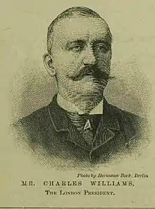 Charles Williams was born on 4 May 1838 in Coleraine, Ireland. He claimed to be descended on his father’s side from Worcestershire yeomen living in the parishes of Tenbury and Mamble.[3] On his mother’s side he descended from Scottish settlers who planted Ulster in 1610.[4] Williams was educated at Belfast Academy in Belfast under Dr. Reuben John Bryce and at a Greenwich private school under Dr. Goodwin. Later on, he went to Southern United States for his health and took part in a filibustering expedition to Nicaragua, where he saw some hard fighting and reportedly won the reputation of a blockade-runner.[1][5] Williams was separated from his party and was lost in the forest for six days. Fevered, he discovered a small boat and managed to return to the nearest British settlement.[6] He served in the London Irish Rifles and had the rank of Sergeant.[7]