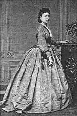 Worth became Empress Eugénie's official dressmaker and ensured the majority of her orders for extravagant evening wear, court dresses, and masquerade costumes.[8] She had him on call constantly to create dresses for events she attended.[10] As an example of the scale of Worth's business with the Empress, for the opening of the Suez Canal in 1869, she had decided she needed 250 Worth dresses.[17] Apart from Empress Eugénie, he had numerous other royal clients, including Empress Elisabeth of Austria.[8]