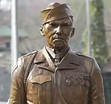 A bronze statue of him was unveiled at the Charles George VA Medical Center (CGVAMC) in Asheville on Sept. 24, 2016. “What a privilege is it to honor a true American hero in such a memorable way,” said Cynthia Breyfogle, CGVAMC director, said at the event. “I was both thrilled and humbled when I first heard that we would receive this statue. The legacy of Charles George was, and still is, an inspiration and influence beyond his local community. His courage and example join those of other brave men and women, past and present, who have answered the call when their country needed them.” The statue was sculpted by James Spratt, a U.S. Navy veteran, who died on the same day it was unveiled.[3]
