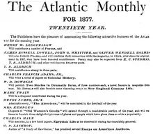 Advertisement for Atlantic Monthly 1877, including article by Hale