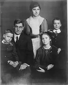 Portrait of the Galloway family, 1918. From left to right: Edward, Charles, Garfielda, Dorothy, and Charles Miller.