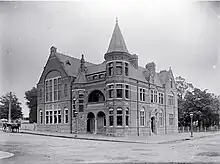 Towards the end of Hulbert's mayoralty, an architectural competition was held for new municipal offices. The council administration was using the old Land Office and premises were cramped. There had previously been a design competition for new offices and a town hall to be erected in Market Square in 1879, but the scheme was abandoned due to the high cost.[75] The city councillors voted on the winner of this recent competition on 7 December 1885 and chose the very modern Queen Anne design by Samuel Hurst Seager.[76] Quite some controversy developed over this decision and this went on for a long time, but the building was constructed and is today known as Our City.[77]
