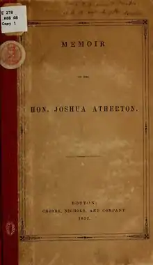 - ↑ "Memoir of the Hon. Joshua Atherton. - Full View | HathiTrust Digital Library | HathiTrust Digital Library". Babel.hathitrust.org. March 14, 2012. Retrieved January 14, 2020.