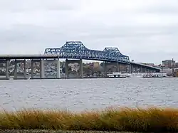 The Charles M. Braga Jr. Memorial Bridge, also known as the Braga Bridge, or simply, The Braga, is a through truss bridge that carries Interstate 195 over the Taunton River between the town of Somerset and the city of Fall River, near the mouth of the Quequechan River at the confluence with Mount Hope Bay. At just over a mile long, it is one of the longest bridges in Massachusetts. Opened to traffic on April 15, 1966,[2] it provides an important link between Providence, Rhode Island, New Bedford, and Cape Cod.