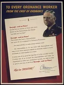 WWII poster, "To Every Ordnance Worker from the Chief of Ordnance. Enough - and on Time!"