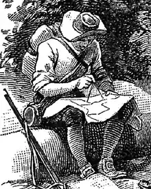 Illustration of Mason surveying the Mason–Dixon line in 1910